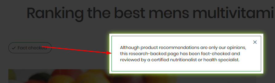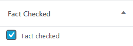 - When a user clicks on the Fact Checked button, he sees a modal window with text customizable in the WordPress dashboard: