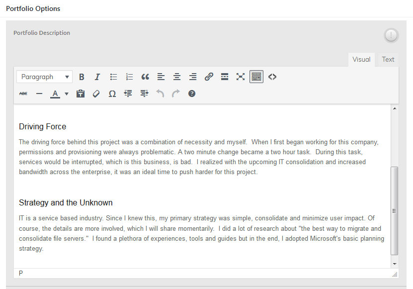 Adding to portfolio post type new Metabox (PHP) for portfolio item description: