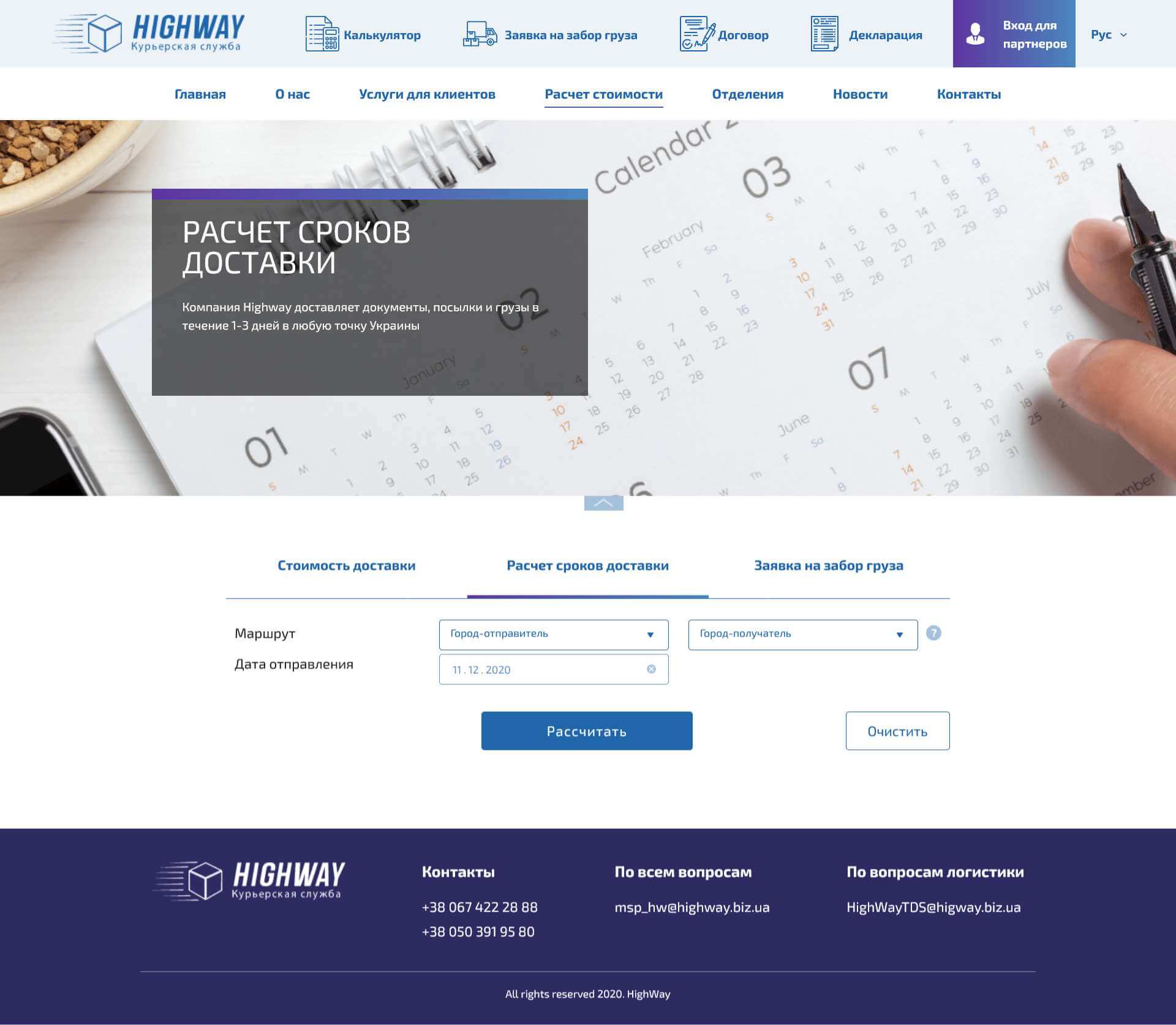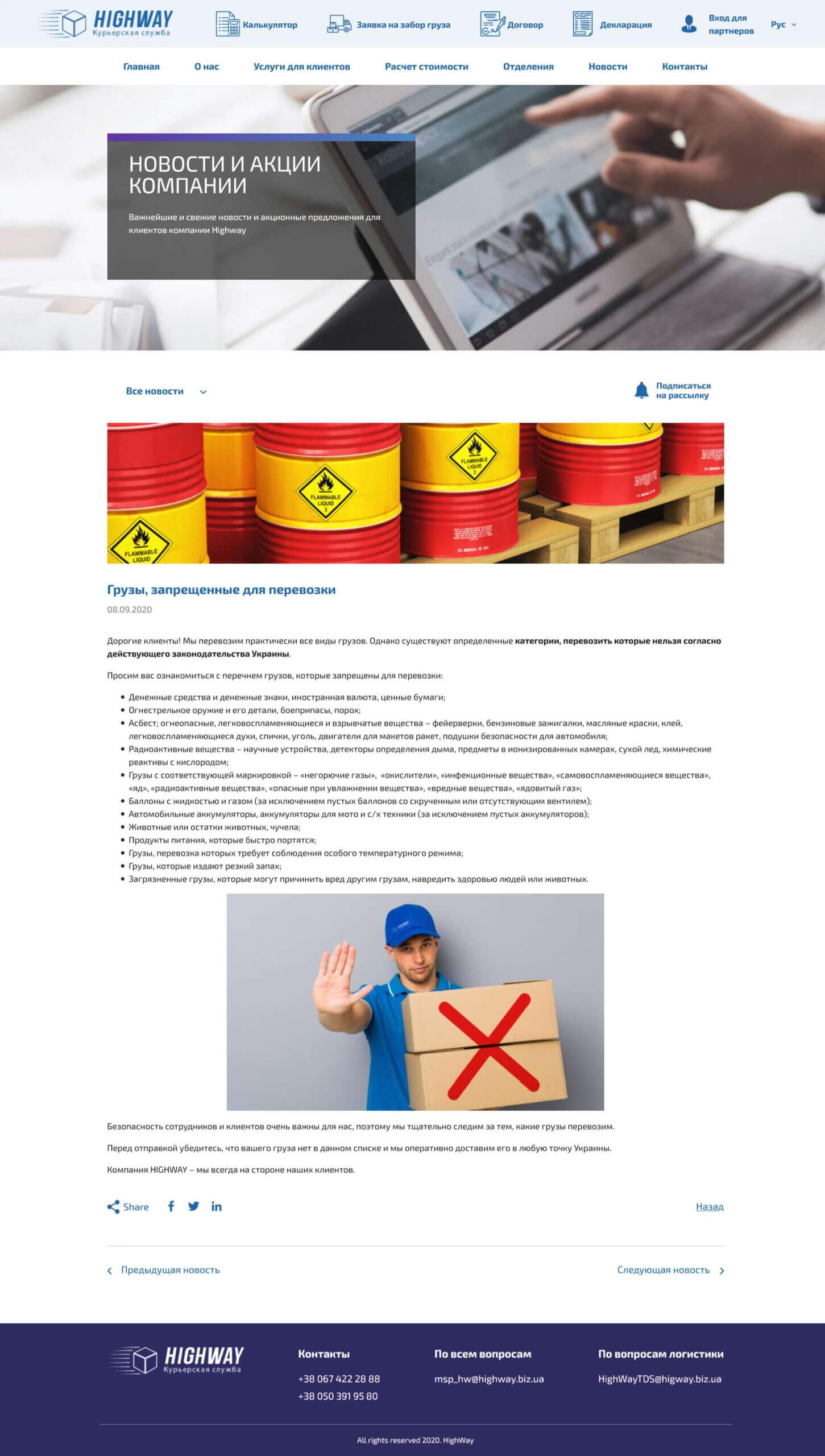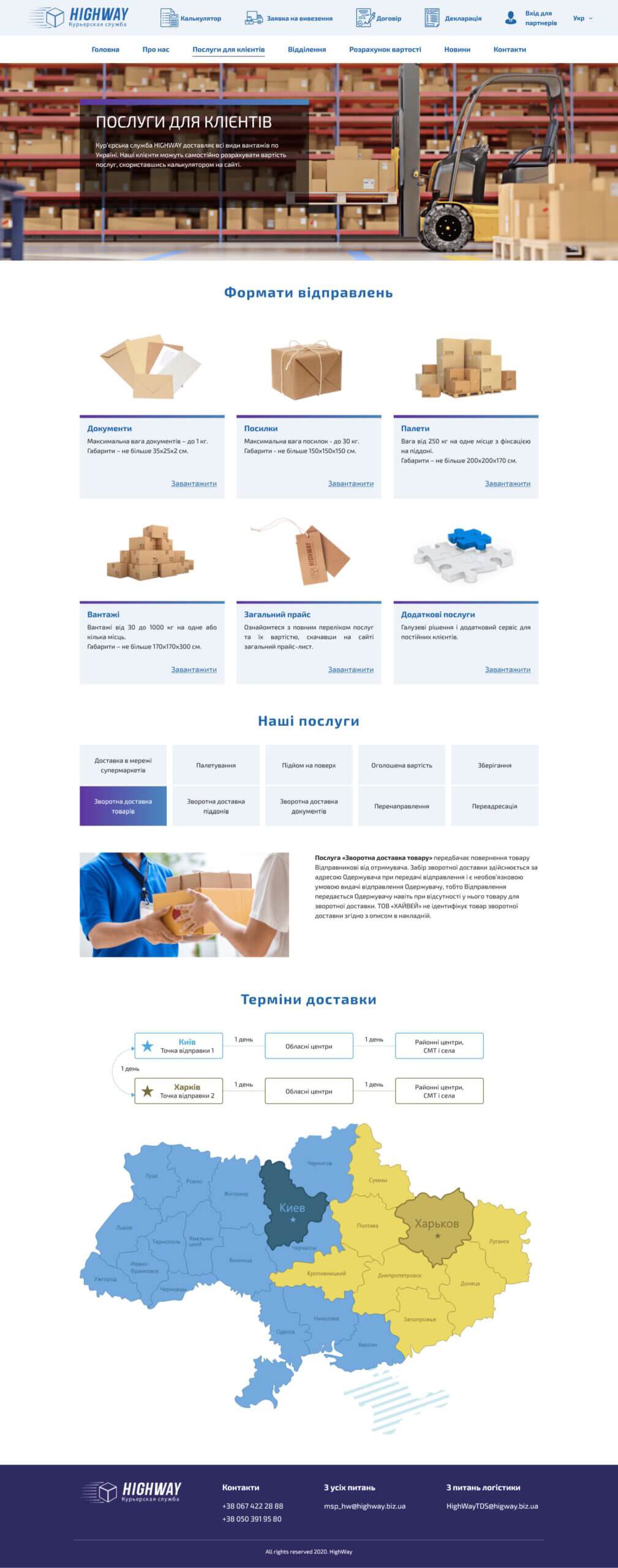 - Many forms: contact form of the site, application for cargo pick-up, application for a contract